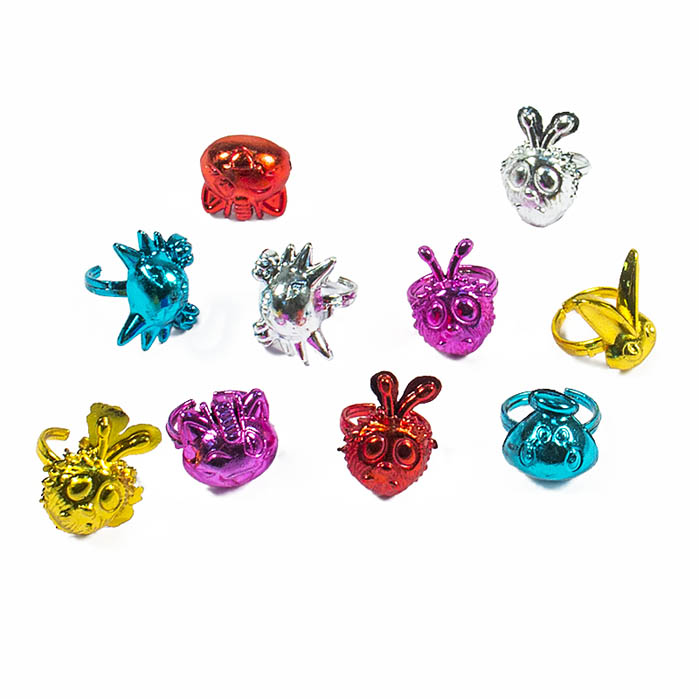Коллекция украшений из разноцветных колечек с разнообразными животными.