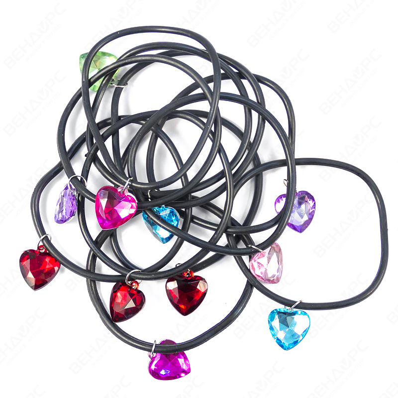 Коллекция красиво ограненных, переливающихся подвесок-сердечек на черном браслете. Маленьким модницам такое блестящее великолепие придется по вкусу!