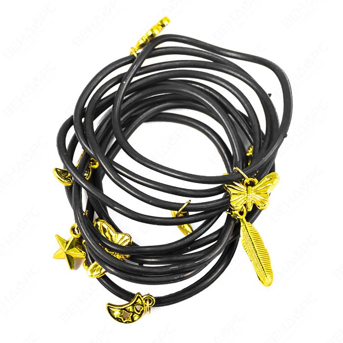 Игрушки для юных модниц: изящные позолоченных подвески на черном браслете.