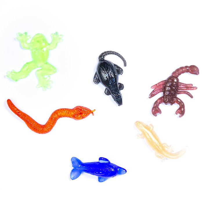 Набор лизунов в виде различных представителей фауны: лягушка, мышка, змея, ящер, дельфин, скорпион.