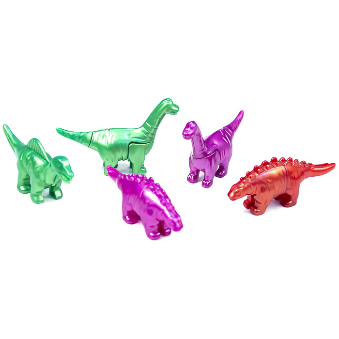 Игрушки идут в разобранном виде с инструкцией по сборке, что позволяет детям проявлять смекалку и развивать моторику рук, мышление и память в процессе сборки и игры. Набор состоит из деталей для сборки одного динозавра (всего 3 вида динозавров) разных цветов.