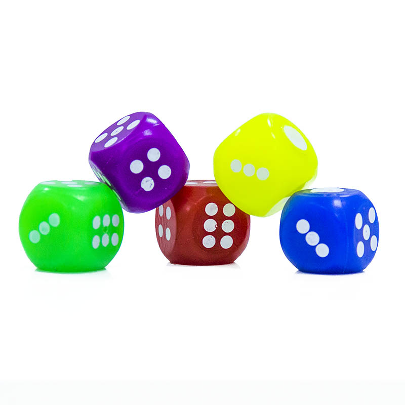 Игрушка представляет собой приятный на ощупь игральный кубик различных цветов. Эти игральные кости тянутся и жмякаются.