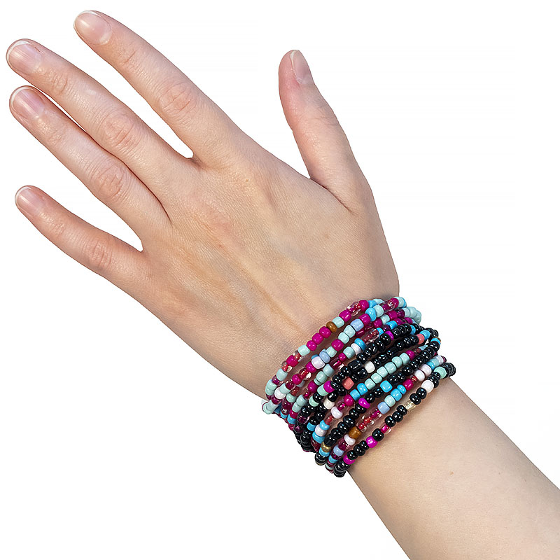 Элегантные браслеты из чередующихся черных и цветных бусин.
