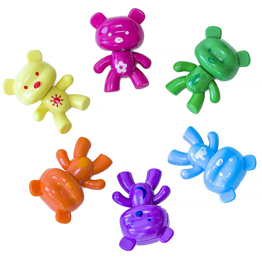 В коллекции 6 цветных медвежат с подвижными лапами и головой. Благодаря этому мишки могут принимать разные позы. Материал: полимер