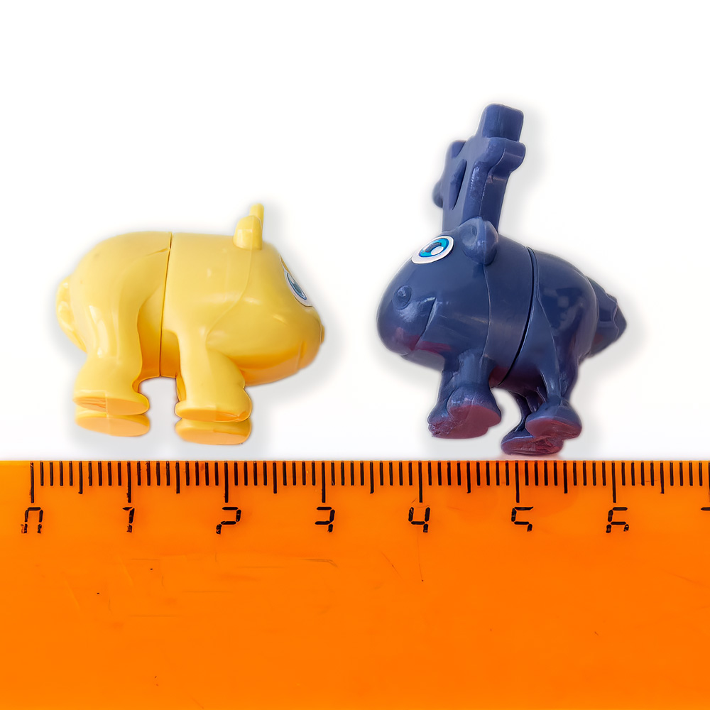 Каждая игрушка в индивидуальной упаковке, внутри: детали конструктора и набор наклеек-глазок.