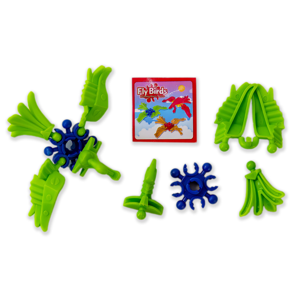 Каждая игрушка в индивидуальной упаковке, внутри: детали конструктора и инструкция.