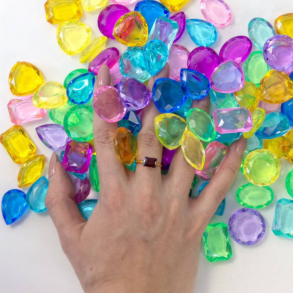Цвета игрушечных драгоценных комней: розовый, зеленый, голубой, желтый