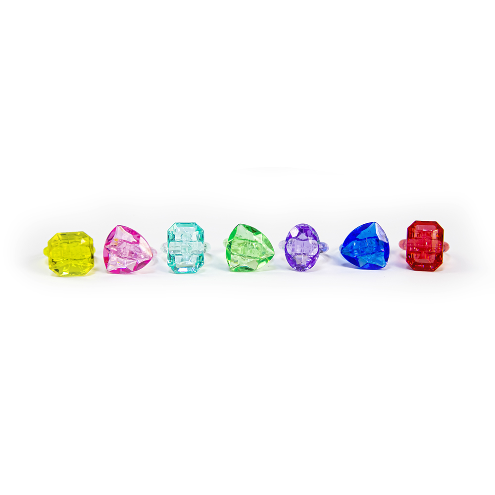 Яркие, объемные украшения на палец. В серии 6 цветов, "камушки" разной геометрической формы. Если собрать их все, можно менять колечки в зависимости от цвета одежды в конкретный день. Диаметр 18 мм