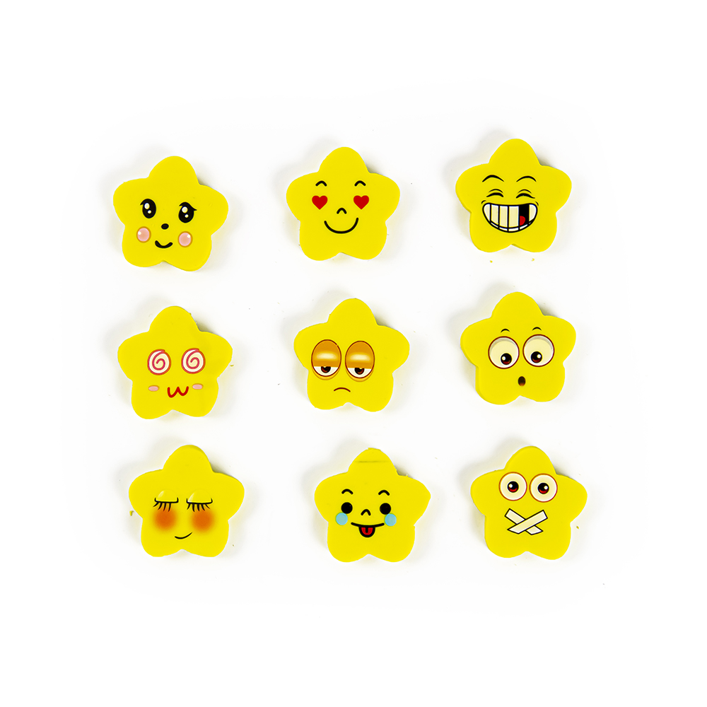 Качественные стерки в виде звездочек с разными выражениями эмоций. Отлично стирают. 10 разных дизайнов.
