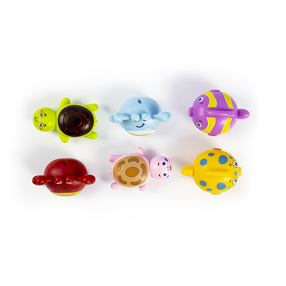Игрушки-машинки в нескольких видах: краб, рыбка-клоун, черепаха, каждый вид в 2-х цветах .