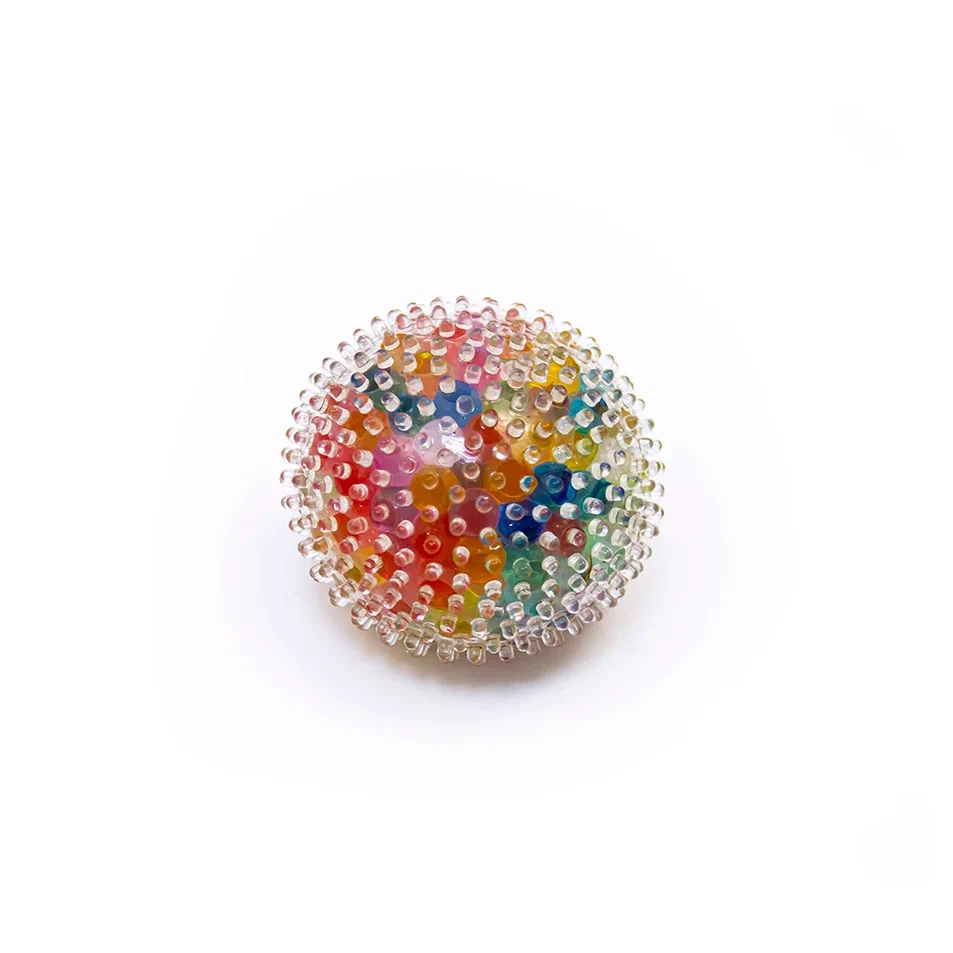 Мячи-антистресс с мягкими шипами и крупными разноцветными шариками внутри.