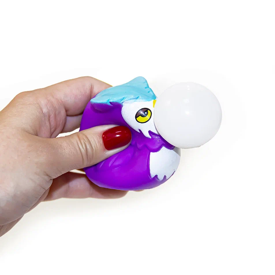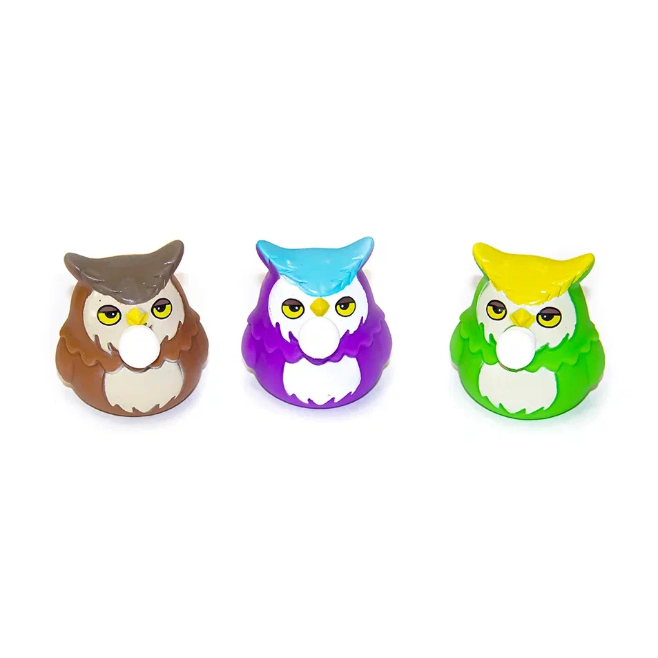 Игрушка филин, при нажатии изо рта неожиданно надувается пузырь. Как только нажатие ослабевает, пузырь мгновенно исчезает. В этой же серии представлены Слоненок, Лягушка, Утенок, Совы, которых можно объединить в микс.