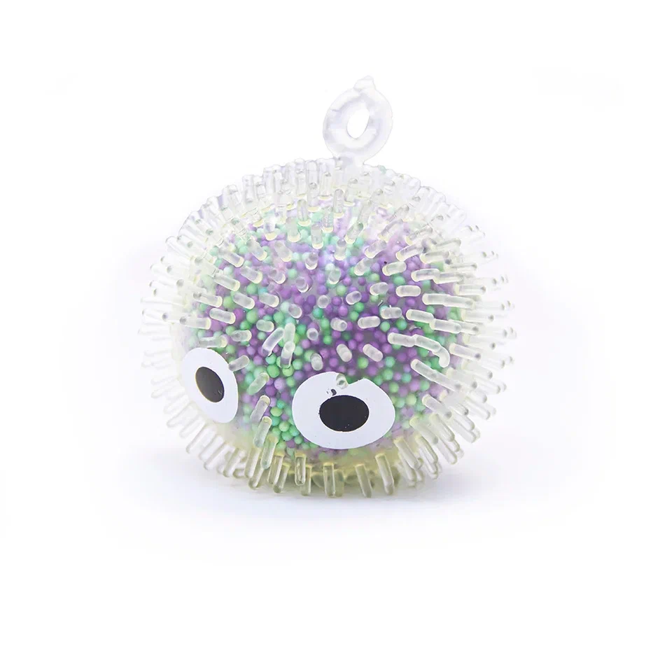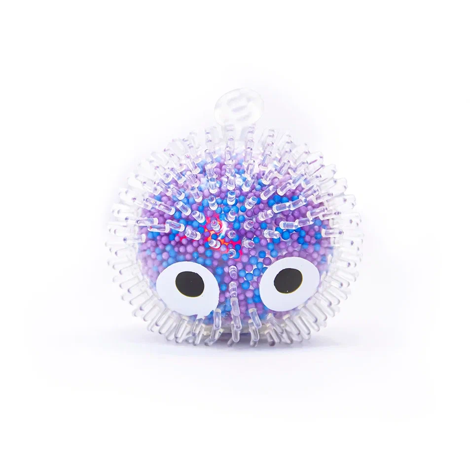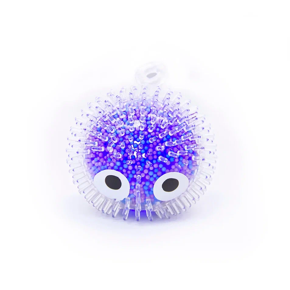 Коллекция шапастых антистрессов с разноцветными гранулами внутри. При ударе мяч светится.