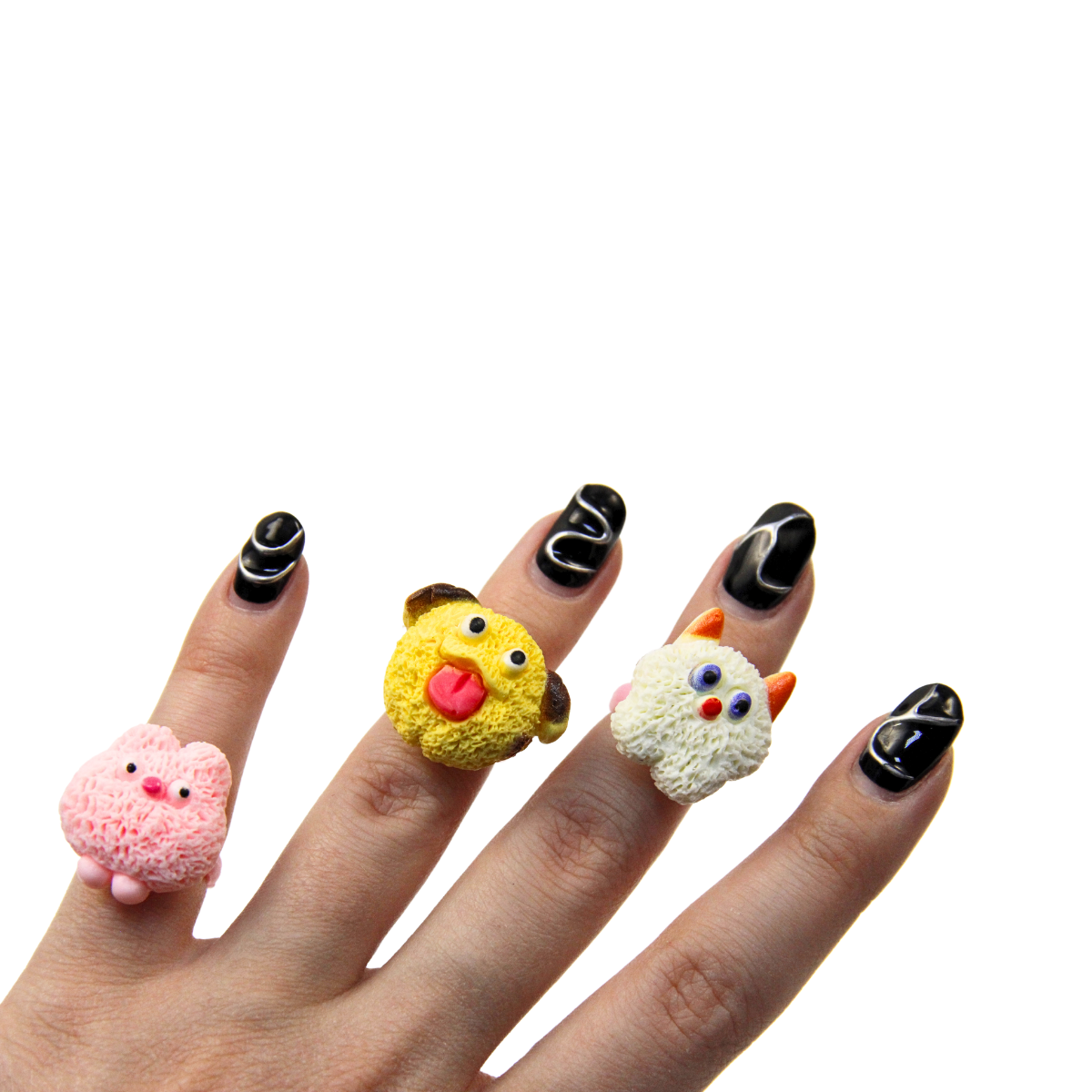 Набор колечек со смешными мультяшками.
