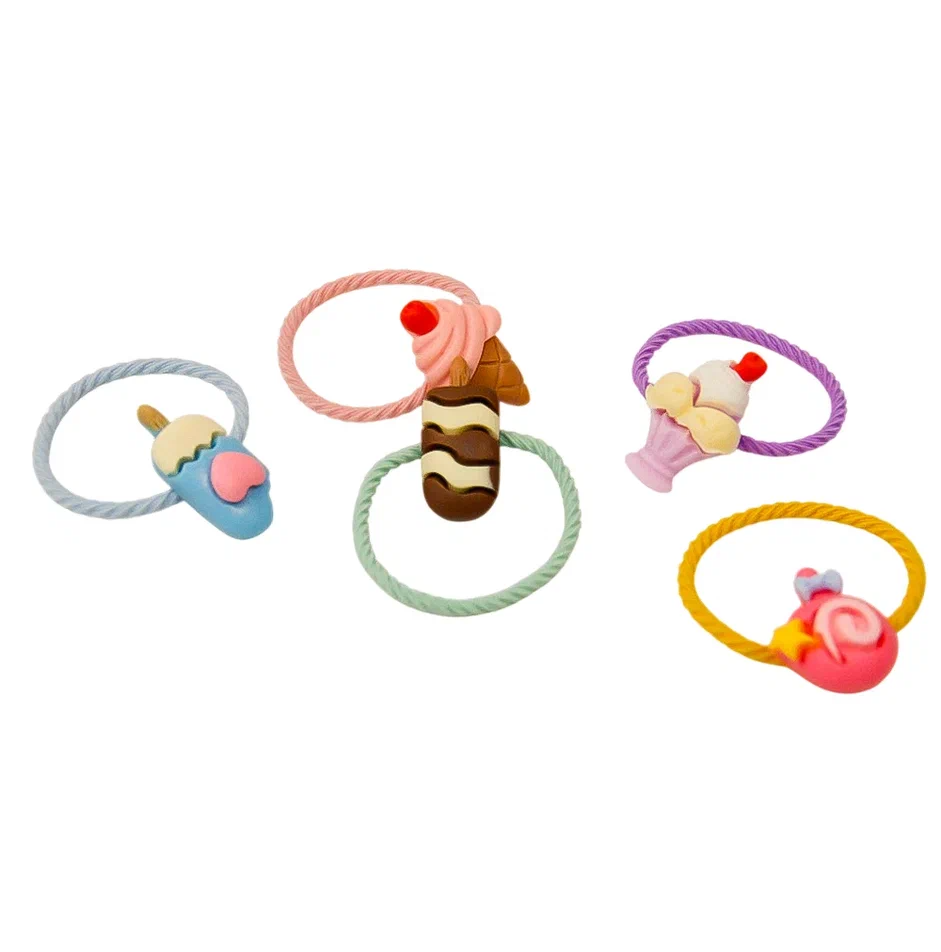 Набор состоит из разноцветных упругих резинок с фигурками в качестве украшений.