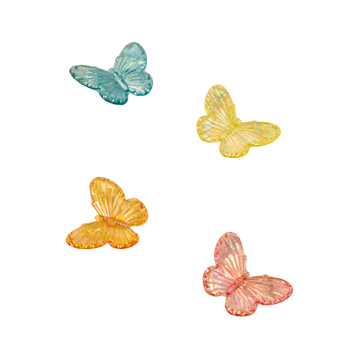 Набор переливающихся бабочек разных цветов.