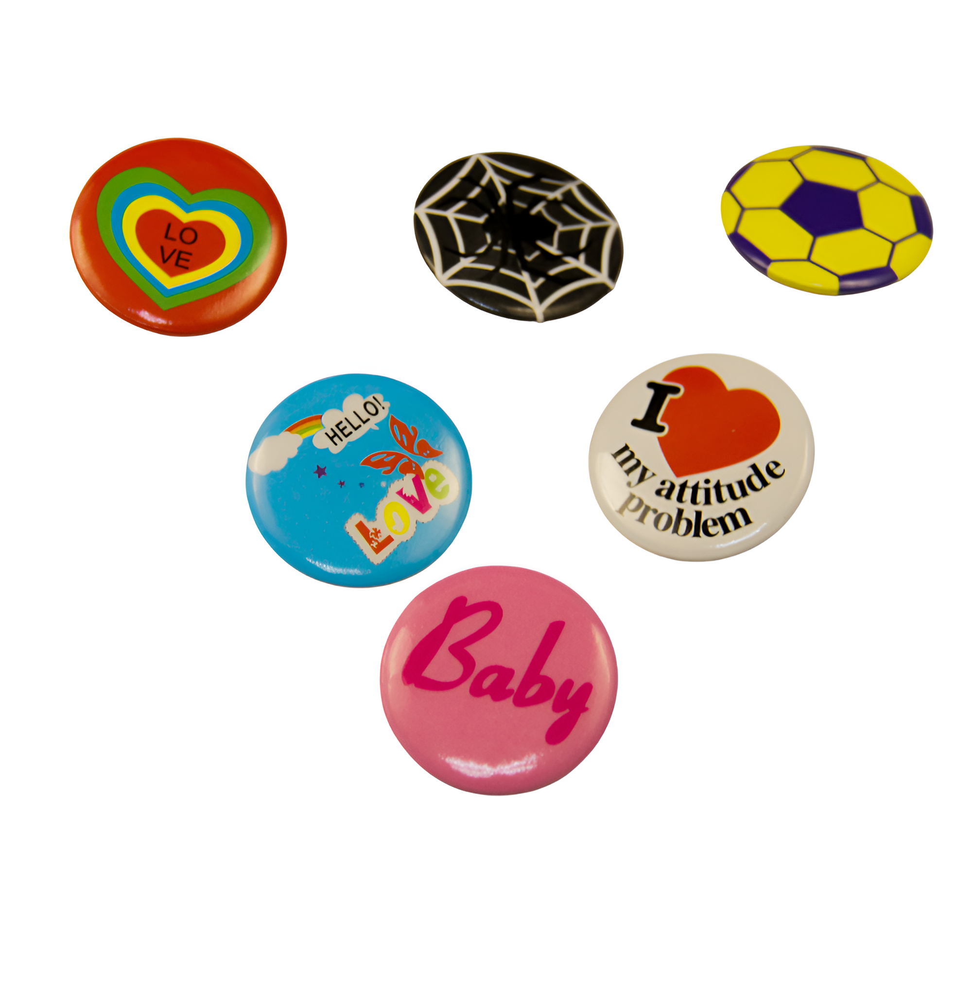 Коллекция разнообразных значок. Принты смайликов, животных, сердечек, цветочков, мордашек и много других. Значки данной серии подойдут детям разного возраста.