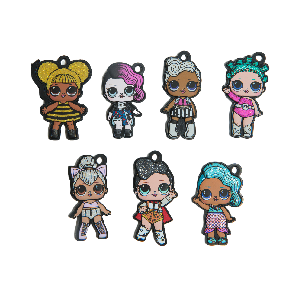 Эластичные плоские игрушки – брелочки с изображением глазастых куколок-лол. Можно прицепить на замочек рюкзака, пенала, связку ключей и тд. Около 7 видов в коллекции.