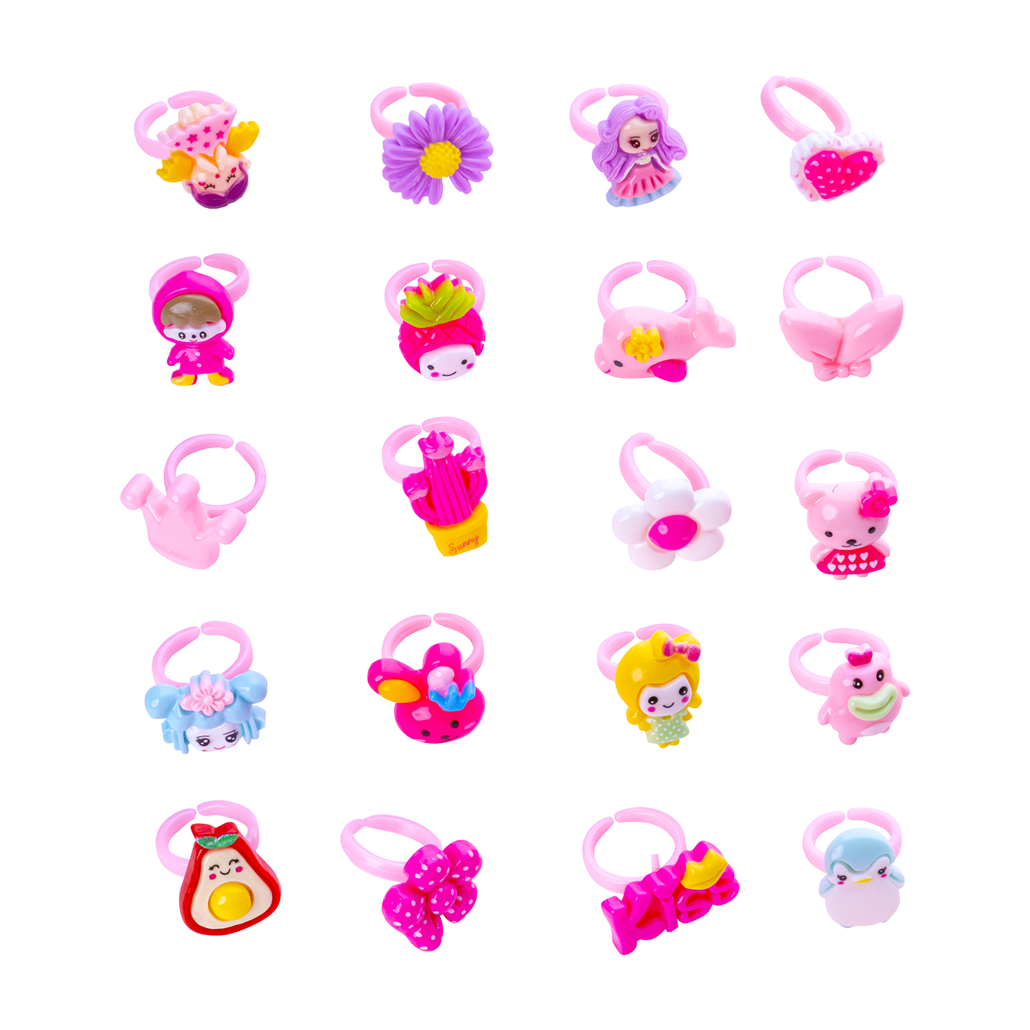 Коллекция игрушечных колечек для маленьких модниц. Колечки с оригинальными дизайнами от крошки-дельфина до улыбающегося подсолнуха. Более 20 дизайнов колечек в миксе.