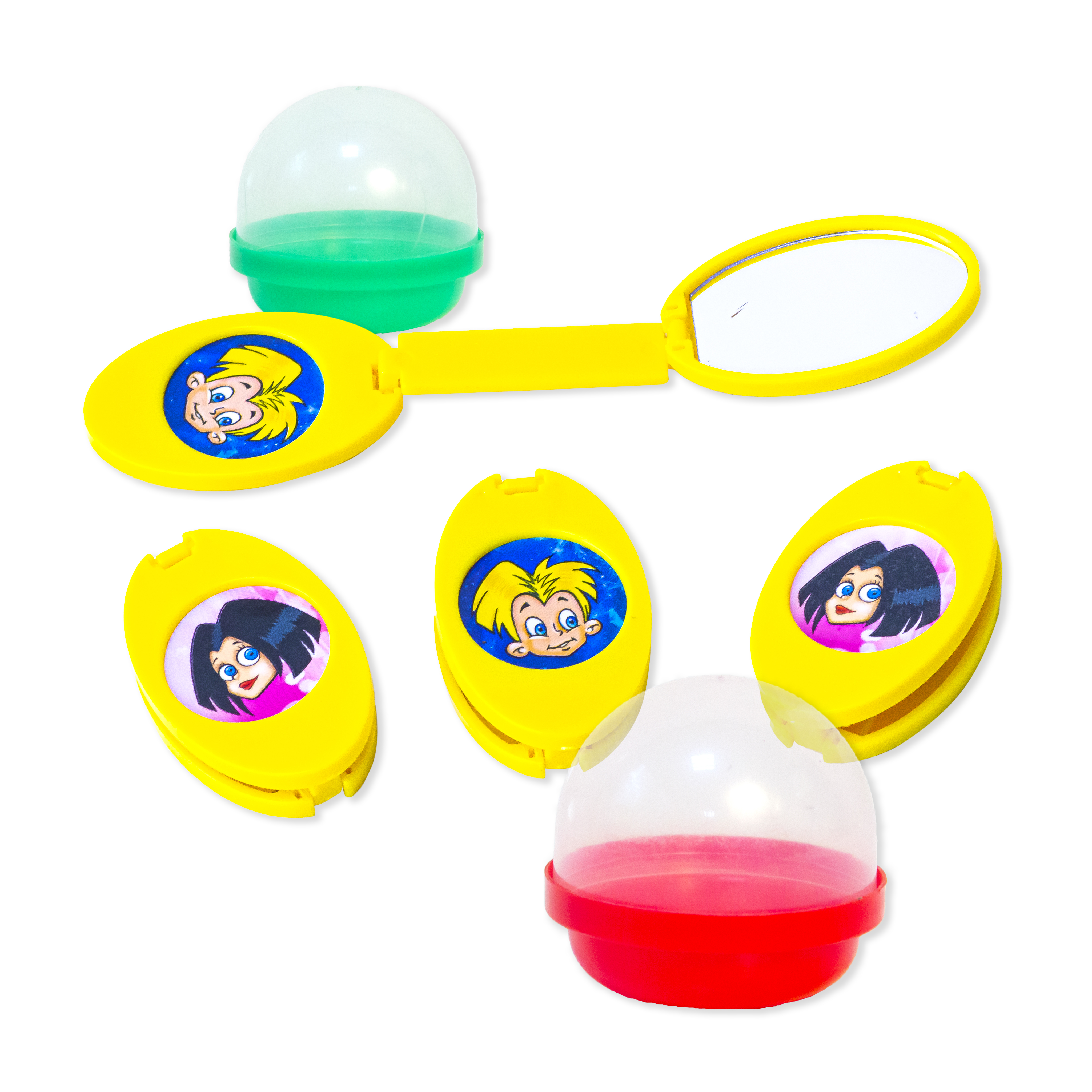 Яркие игрушки-трансформеры, которые превращаются в компактное зеркальце на подставке. Внимание! Обязательно снимите защитную пленку с поверхности зеркала.