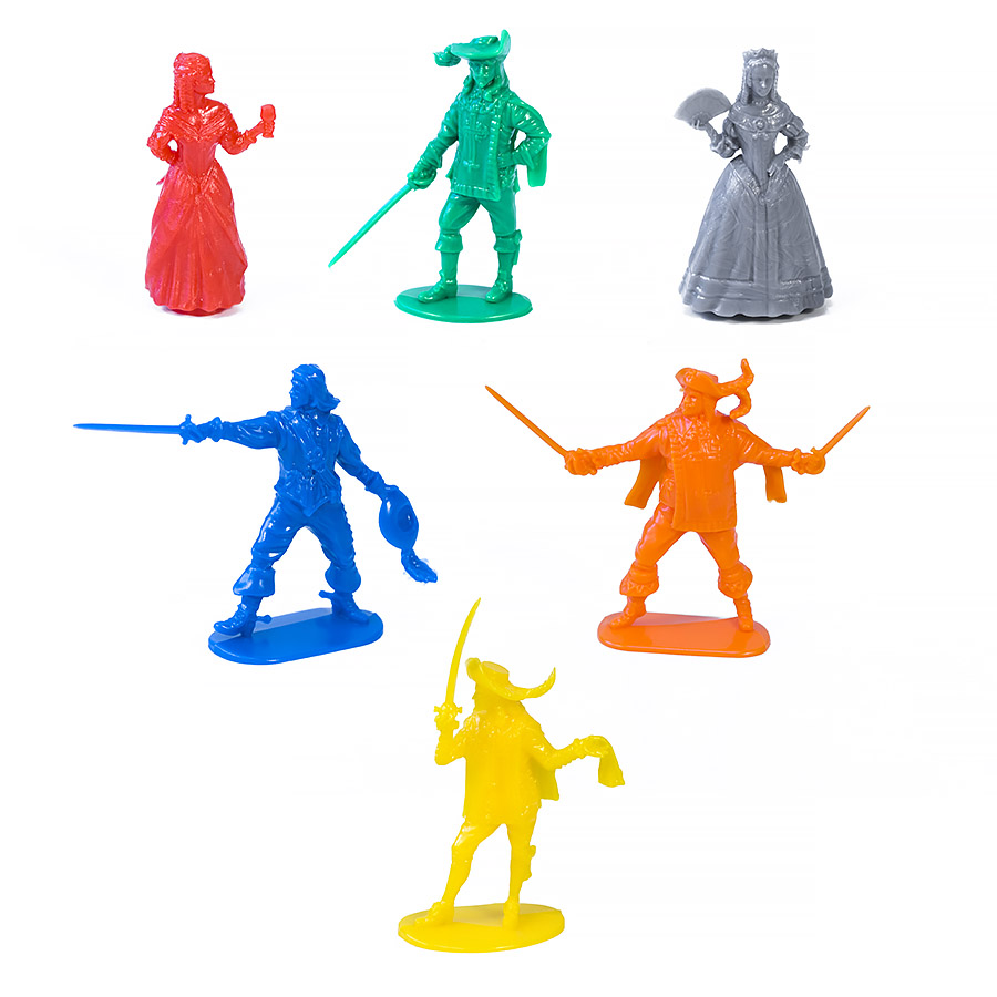Один за всех – и все за одного! Романтика молодецкой жизни мушкетеров на службе его величества, полной подвигов и приключений! Коллекция детально прорисованных фигурок ярких цветов: четыре храбрых мушкетера, миледи, прекрасная Констанция. Благодаря устойчивому основанию, фигурки можно использовать как фишки в настольных играх.