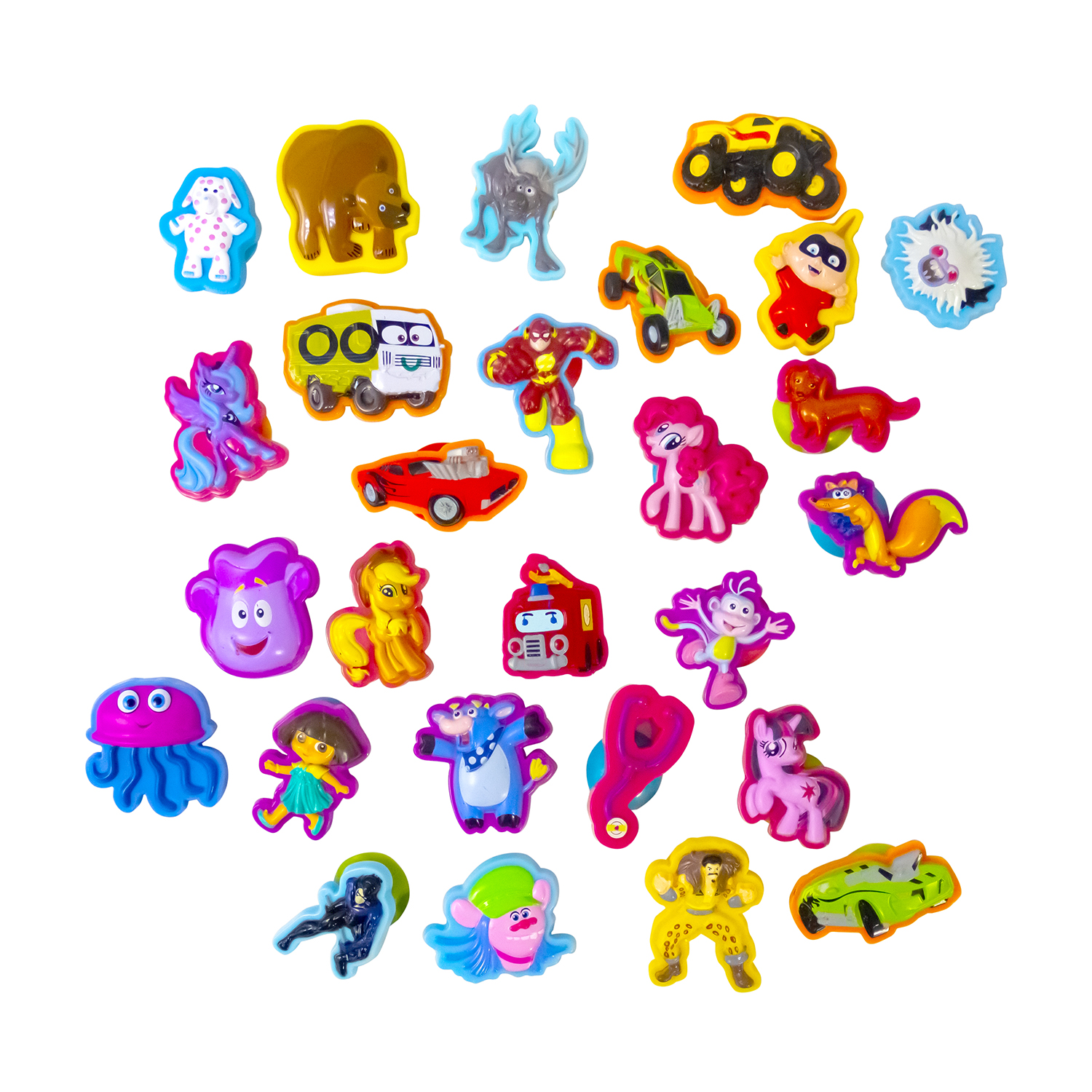 Коллекция героев самых популярных мультфильмов на присосках. Плотно крепятся на любую гладкую поверхность. Ребенок обязательно захочет собрать у себя полную коллекцию любимых персонажей. Больше 20 героев, состав упаковок может отличаться.