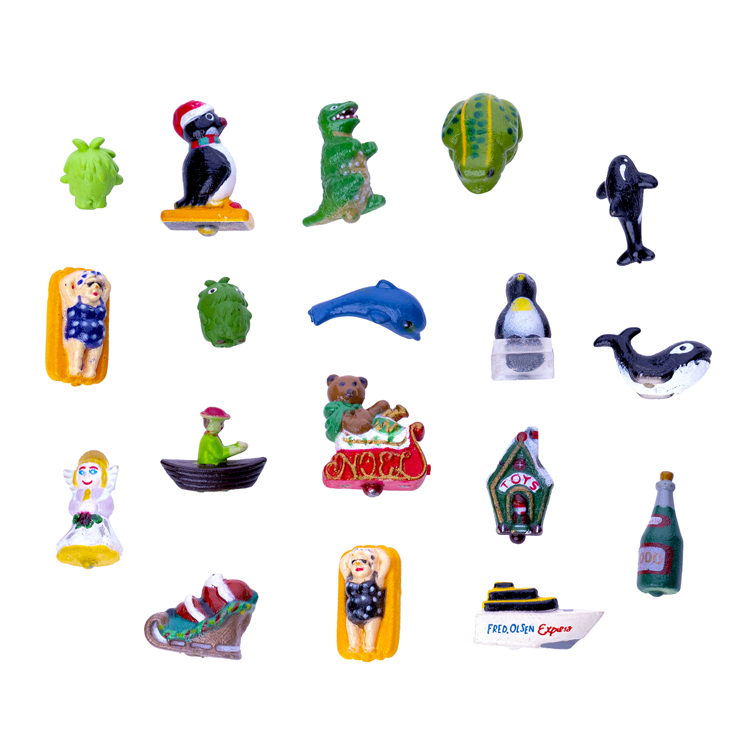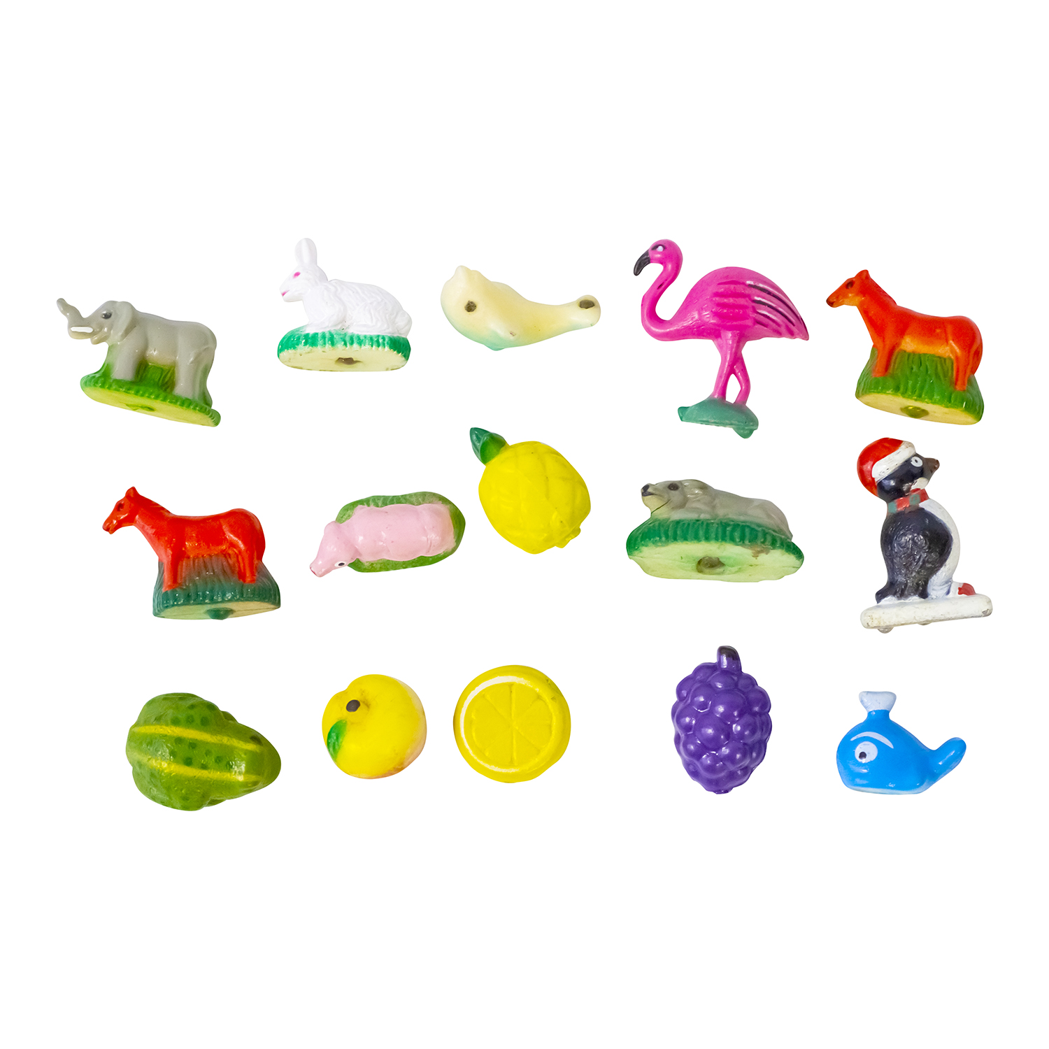 25 фигурок животных, птиц, рыб, ягод и фруктов. Высокое качество проработки деталей. Состав упаковок может отличаться