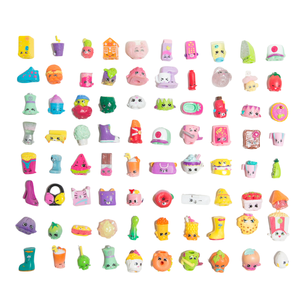 Фигурки в духе шопкинсов. Зверюшки, и тортики, и кексики, и туфельки, и пылесосы, и фруктики, и сумочки - много видов игрушек, которые надолго увлекут ребенка и погрузят в мир фантазийных приключений.
