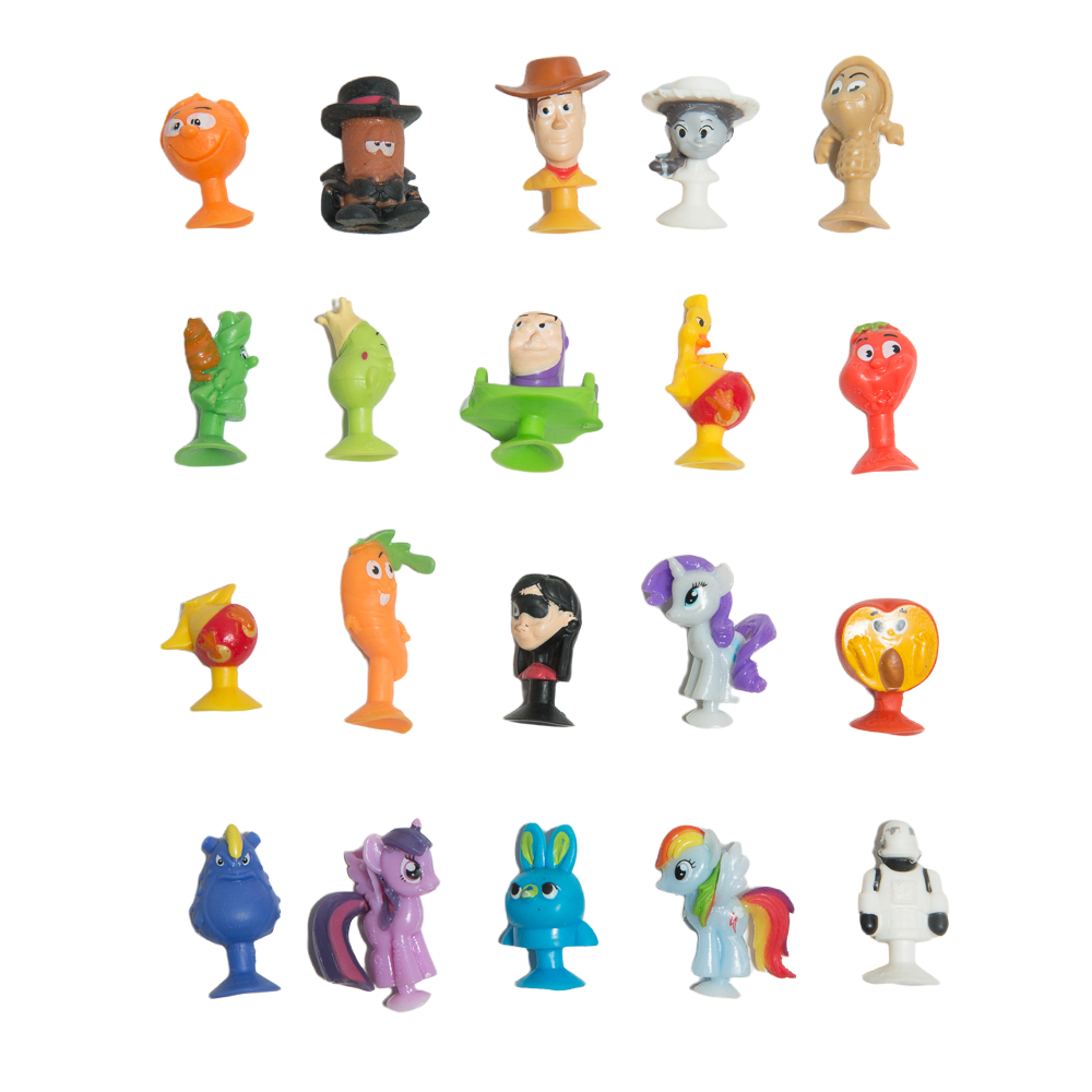 В коллекции собрано большое количество игрушек-прилипал. Веселые курочки, бобы-короли, мистер-морковь, а им в компанию - герои мультфильмов (из Истории игрушек, Суперсемейки и тд). Много видов. Высокое качество.