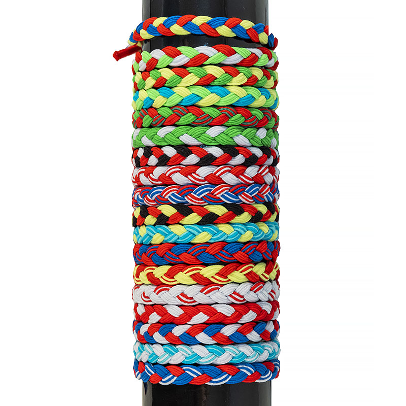 Яркие, цветные фенечки для мальчиков и девочек, которые хотят быть в тренде. Могут использоваться как браслеты на руку или резинки на волосы. Размер фенечки 0.9 смх6,5 см (диаметр). В коллекции 18 разных стилей (все двухцветные или трехцветные) . Без капсул представлены в удобной упаковке - 18 шт. на дисплее в виде тубуса. Размер дисплея 26х7 см