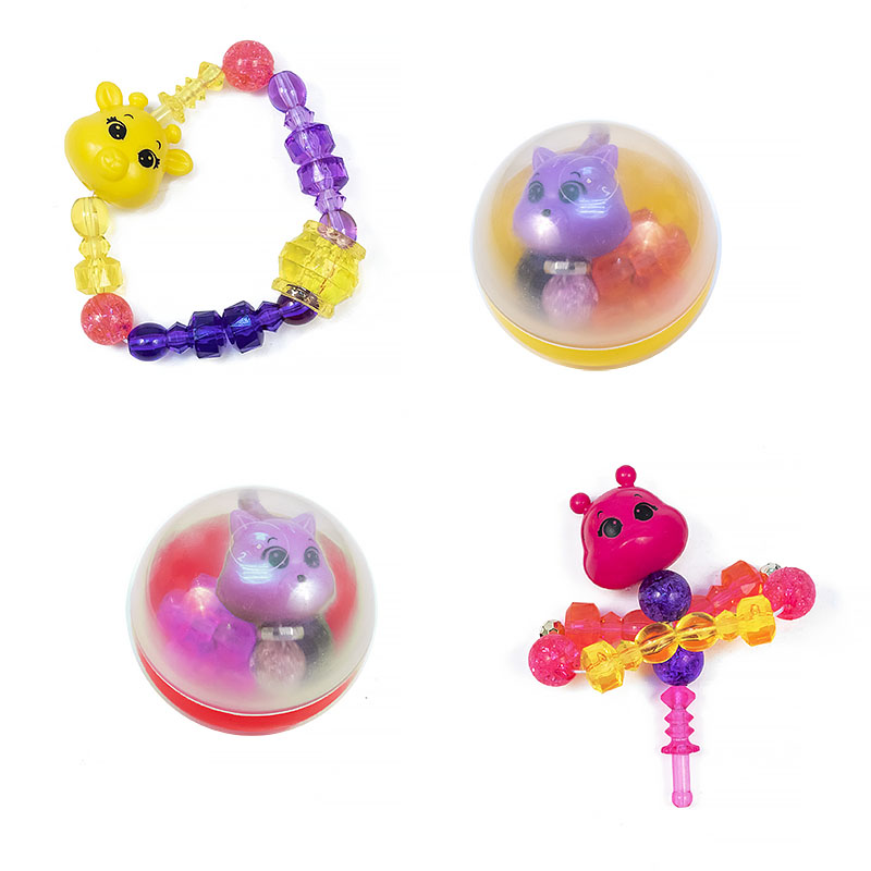 Оригинальные игрушки-трансформеры из разноцветных бусин разного размера. Несколькими движениями превращаются из браслета в забавную игрушку, так как бусины нанизаны на эластичную нитку. В коллекции 8 животных ( киска, лебедь, стрекоза, пони, бабочка, собака, единорог, жираф). Из нескольких браслетов за пару секунд можно собрать сверкающее ожерелье.