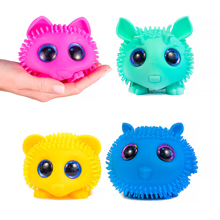 Коллекция состоит из 18 персонажей (9 разных зверушек в двух цветовых гаммах). Приятные на ощупь, с эффектом антистресса. На внутренней поверхности каждого животного напечатан небольшой «скрытый» символ, полезный для игры. Эти символы (10 различных) можно найти сжимая игрушки.
