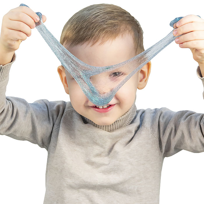 Залипательная тянучка разных цветов с блестками.