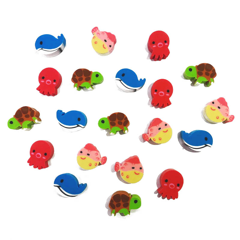 Привлекающие внимание, яркие игрушки - ластики в виде веселых обитателей океанариума (киты, осьминожки, черепашки, рыбки и др.). Задорная игрушка – полезная в учебе штучка!