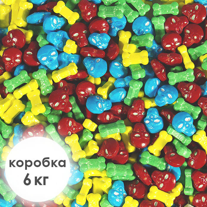 В транспортной коробке конфеты расфасованы в 3 пакета. В каждой коробке приблизительно по 7590 конфет.