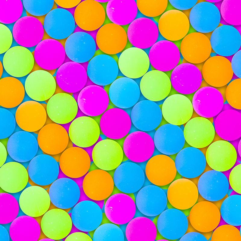 Красочные неоновые мячи, которые очень ярко смотрятся в колбе торгового автомата.
