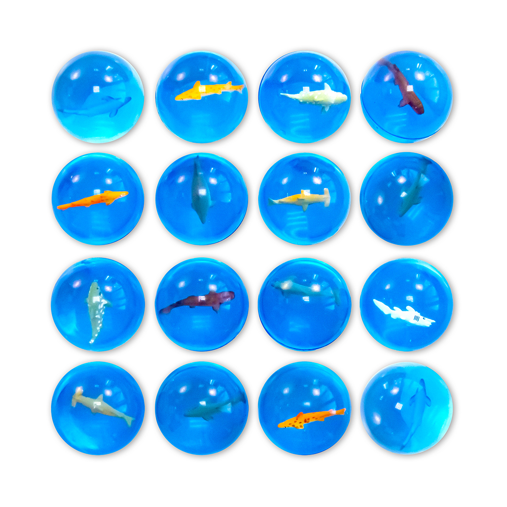 Мячи-прыгуны с 3D-фигурками акул внутри. Один взгляд на попрыгунчик - и ребенок уже становится Повелителем повелителей морских глубин.