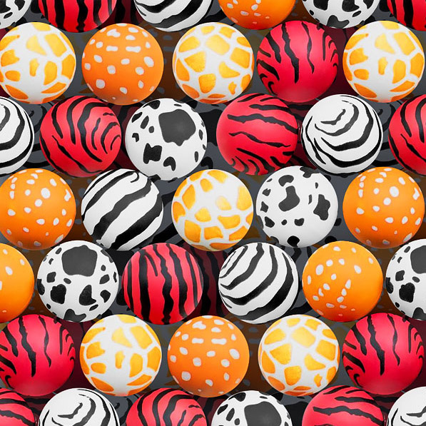 В комплекте несколько видов разноцветных мячей раскрашенных в цвета животных с африканского континента.