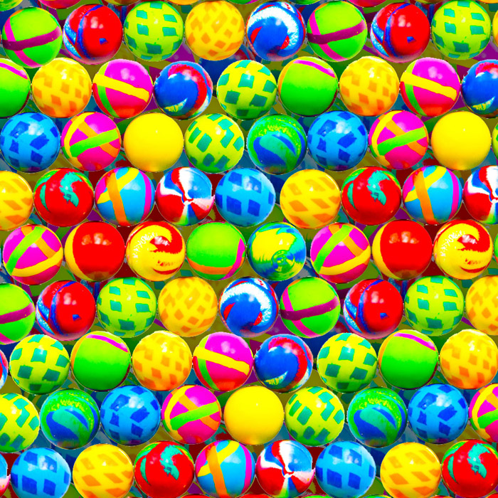 Набор содержит мячи-прыгуны для торговых автоматов с разноцветными рисунками. Собери свою коллекцию.