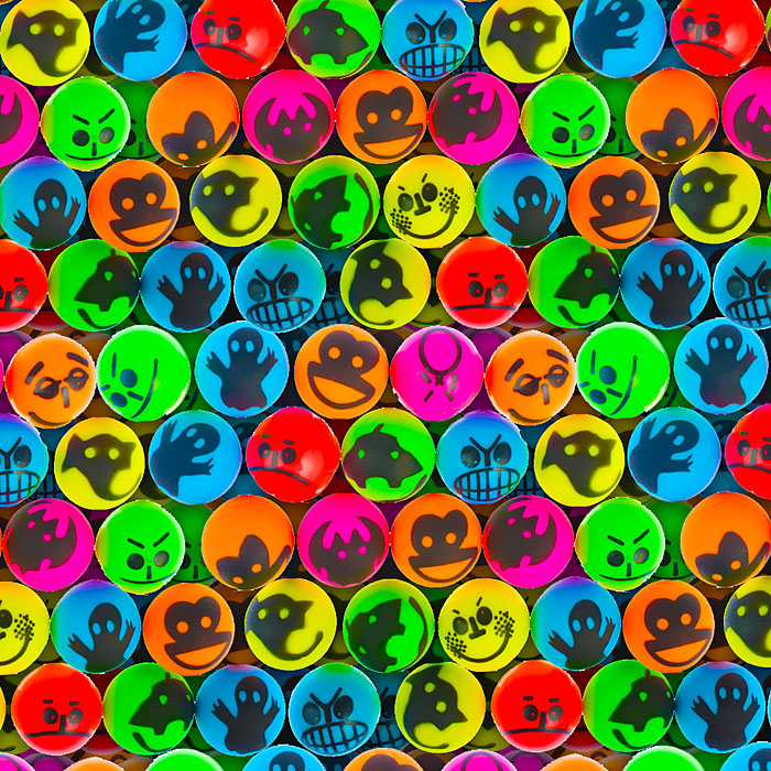 Набор содержит разноцветные мячи для автоматов с изображением смайликов.