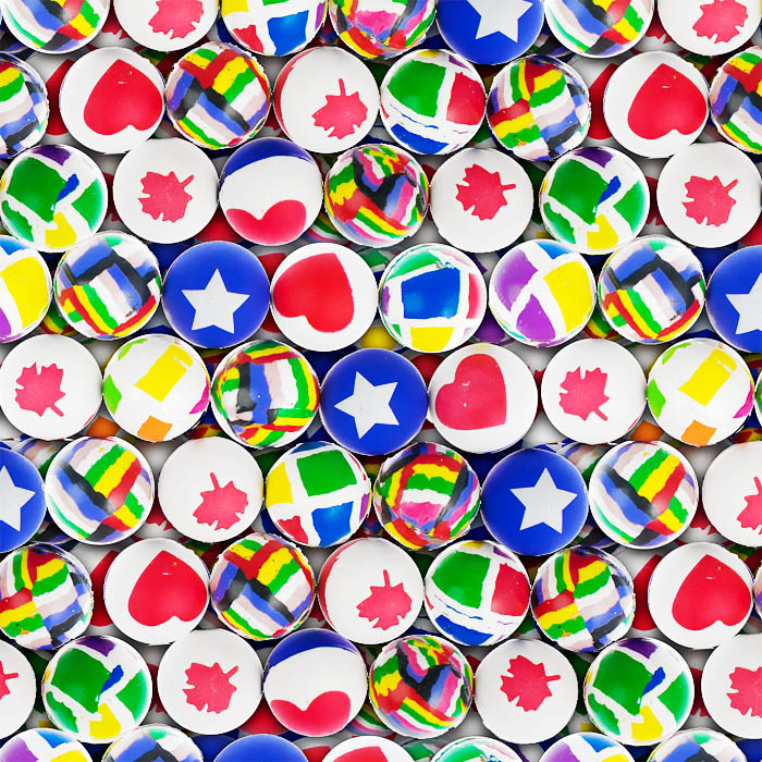 Набор содержит разноцветные мячи-прыгуны для автомата с изображением флагов разных стран. Собери всю коллекцию.