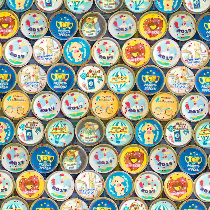 Мячи содержат веселое предсказание на одной стороне и символ Нового 2017 Года на другой.
