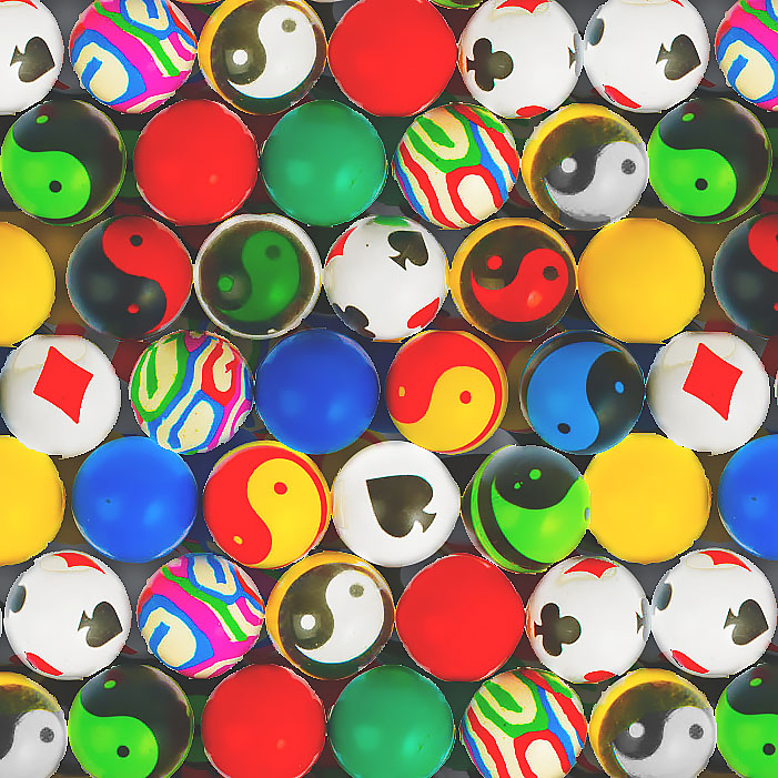 Набор содержит разноцветные мячи для торговых автоматов с изображением знаков и карт. Собери свою коллекцию.