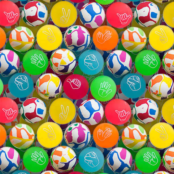 Расшифруй значения всех жестов, изображенных на разноцветных мячиках-попрыгунчиках.