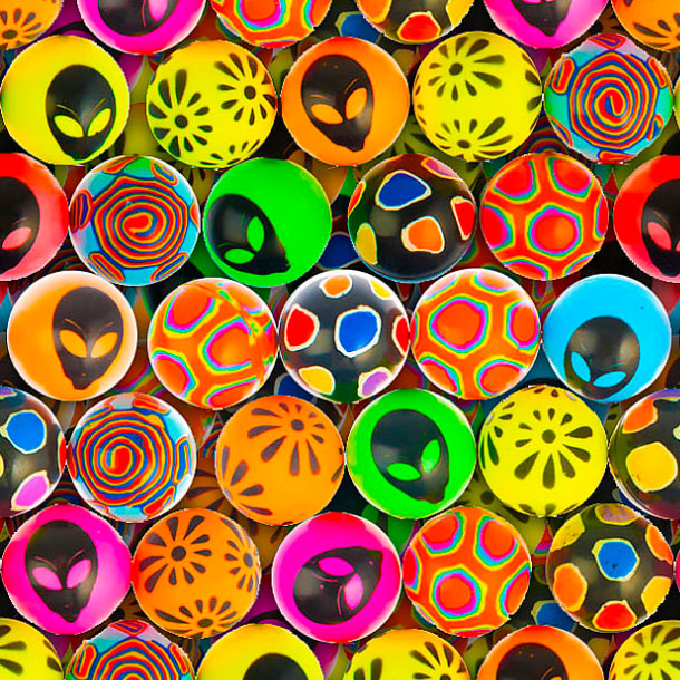 Один из самых недорогих видов разноцветных мячей-прыгунов для торговых автоматов.