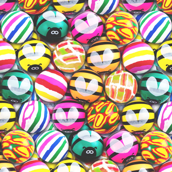 В наборе яркие полосатые мячи-пчелки, а также другие разноцветные прыгуны. Мячи большого диаметра отлично подойдут для веселых детских игр, а также разовьют у детей скорость реакции и координацию движений.
