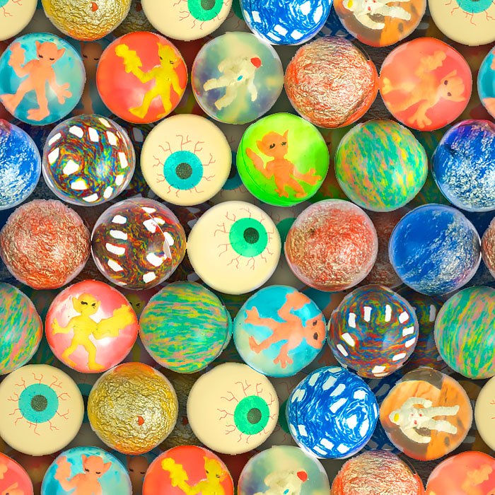 Набор содержит разноцветные мячи-прыгуны для автоматов с изображением инопланетных существ.