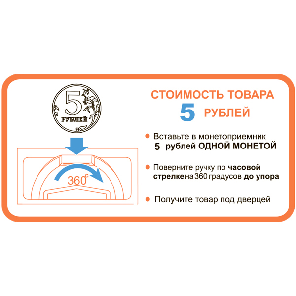 Наклейка-инструкция к монетоприемнику по оплате и получению товара. Наклеивается с внутренней стороны колбы с наполнителем.